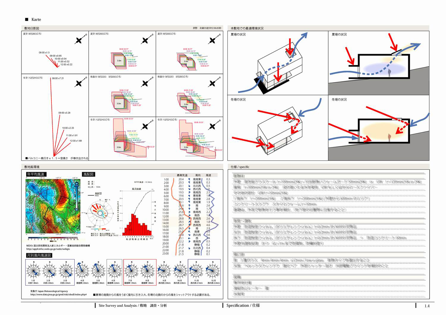 敷地の緩やかな傾斜と周囲に広がる素晴らしい眺望を活かすように慎重に計画が進められた。また、温度、光、風向きなどといった感覚的に扱いがちな環境要素を数値として置き換え、可視化させながらプランニングの中に反映させていった。