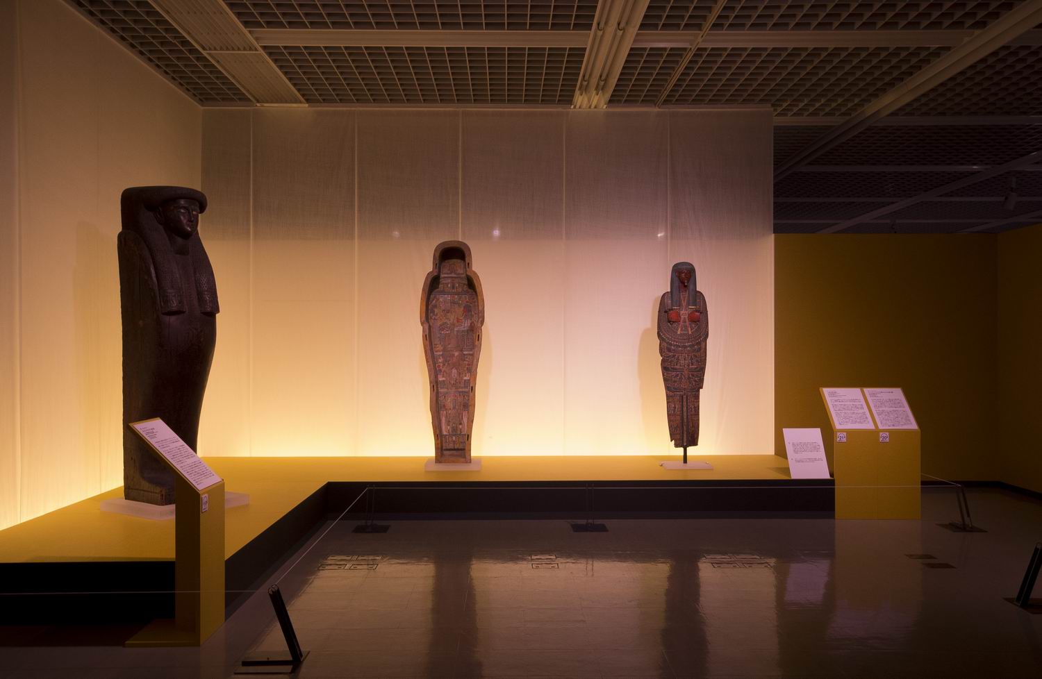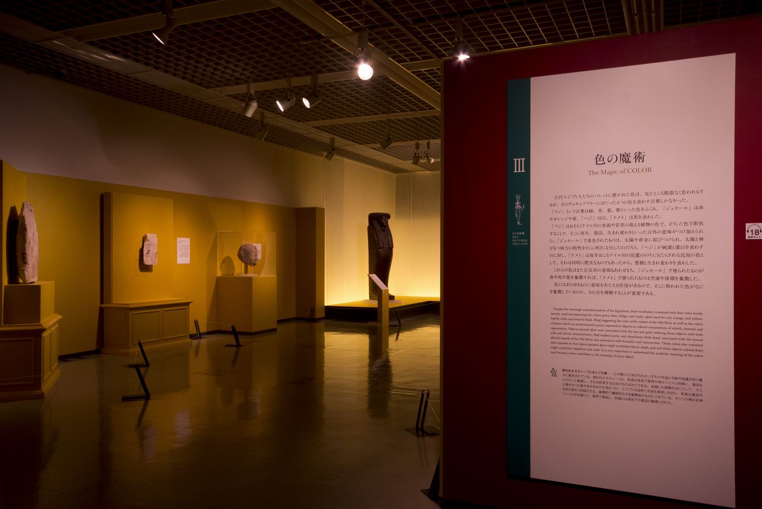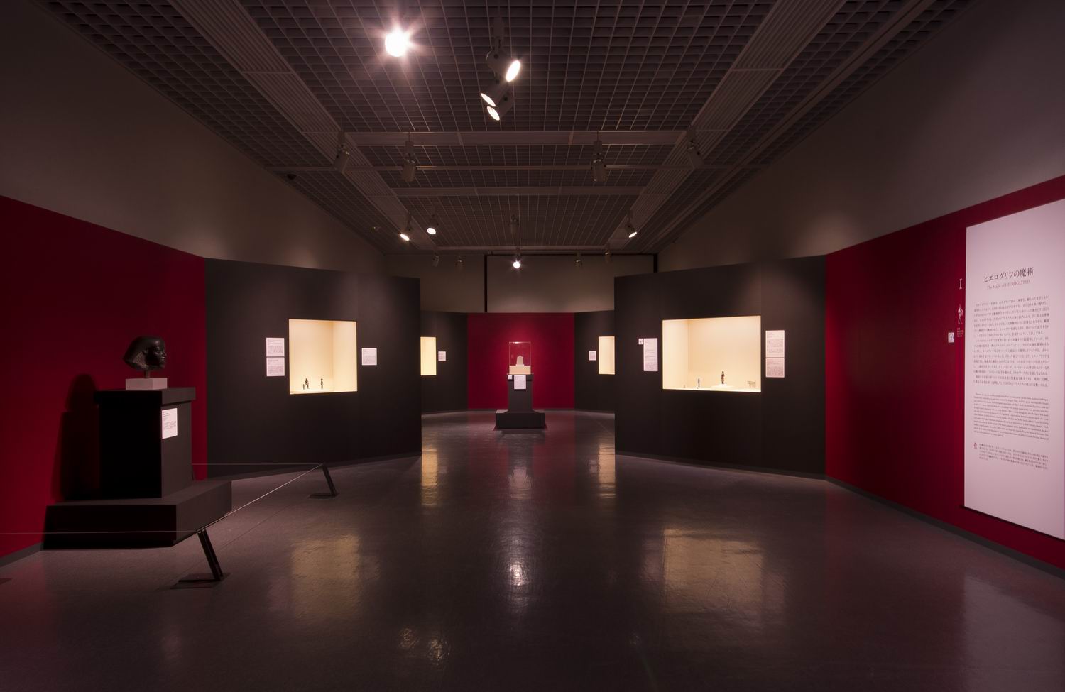 大河ナイルの流域に約3000年間にわたり栄え、そこから出土された、古代エジプトの美術品を「ヒエログリフ」「素材」「色」といった3つの大きなテーマに分類し展示しています。
